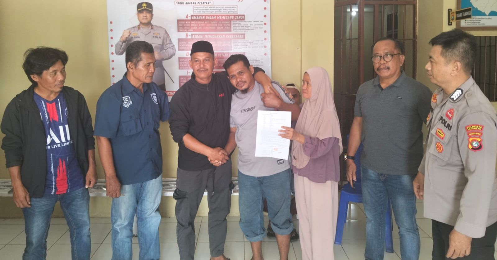 Selanjutnya, pihak Kepolisian memfasilitasi proses mediasi kedua belah pihak dengan pendekatan secara persuasif, SH dan AM sepakat untuk saling memaafkan serta berjanji tidak akan mengulangi perbuatan serupa di kemudian hari.